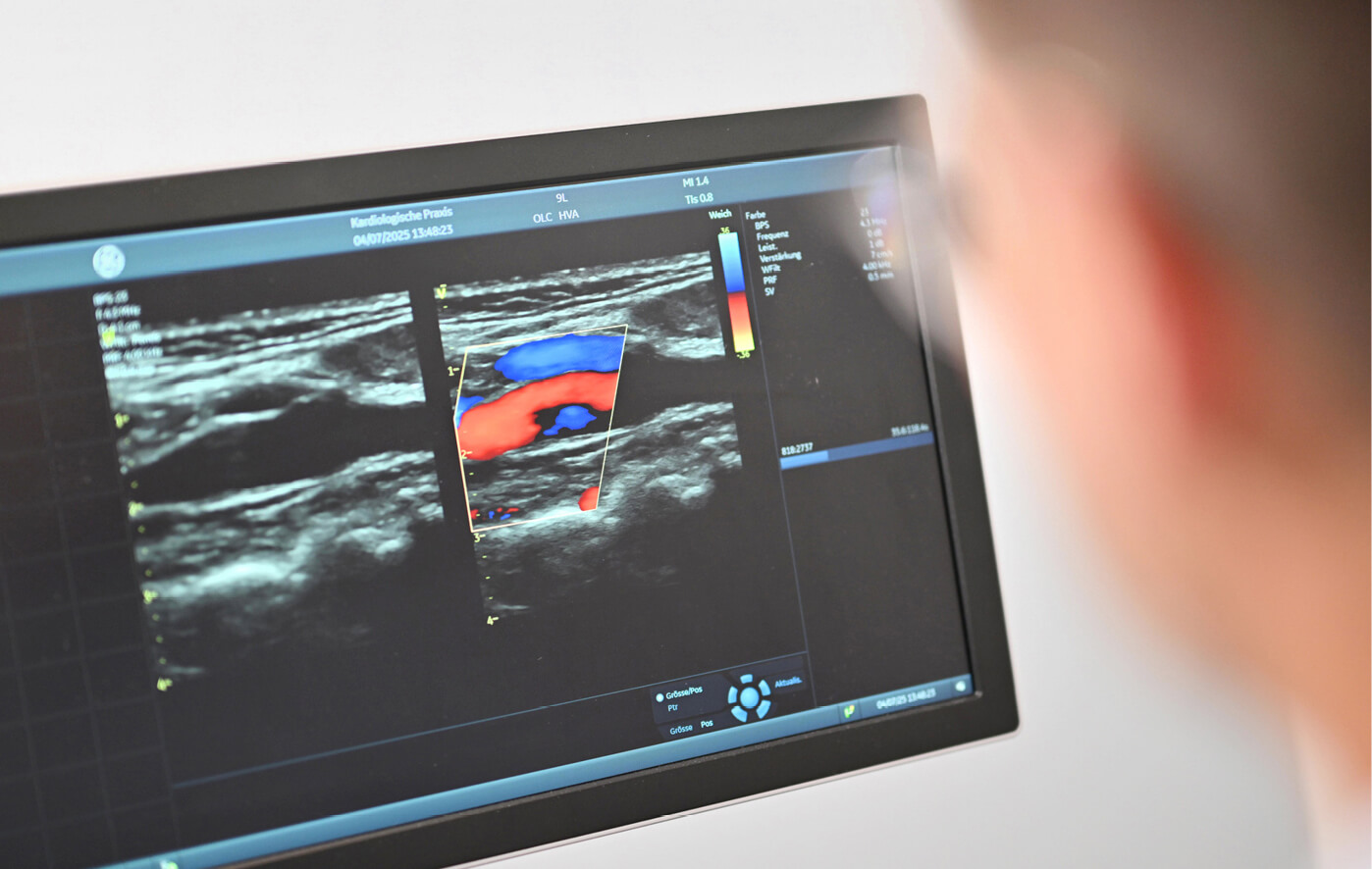 Die Duplexsonographie der Nierenarterien ist eine spezielle Ultraschalluntersuchung zur Beurteilung der Blutgefäße, die Ihre Nieren versorgen. Verengungen (Stenosen) dieser Arterien können zu Bluthochdruck oder einer eingeschränkten Nierenfunktion führen. Mit dieser Untersuchung erkennen wir solche Veränderungen frühzeitig, ohne dass eine Belastung durch Kontrastmittel oder Strahlenbelastung entsteht.